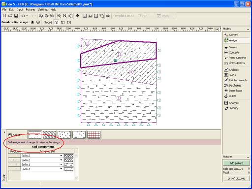 The frame "Assign" contains a list of layers of the profile and associated soils. Its functions are similar to the case of assigning soils in the topology regime.