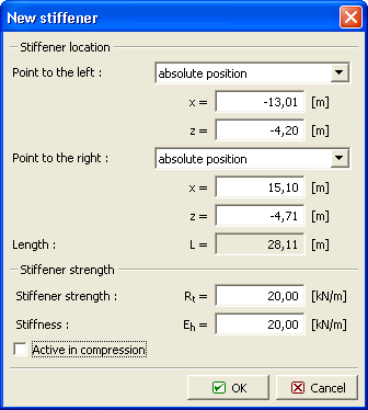 Reinforcements are tensile reinforcing elements (geotextiles, geodrids), which are defined by their starting and end points and their stiffness.