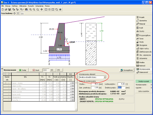 Metody określania sił oraz ich oddziaływania na analizowany przekrój opisane są w rozdziale "Wymiarowanie ściany".