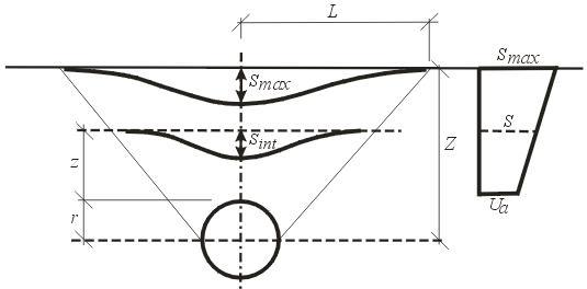 Os valores l e S são utilizados para determinar a forma da depressão sobrecarregada, acima da escavação.