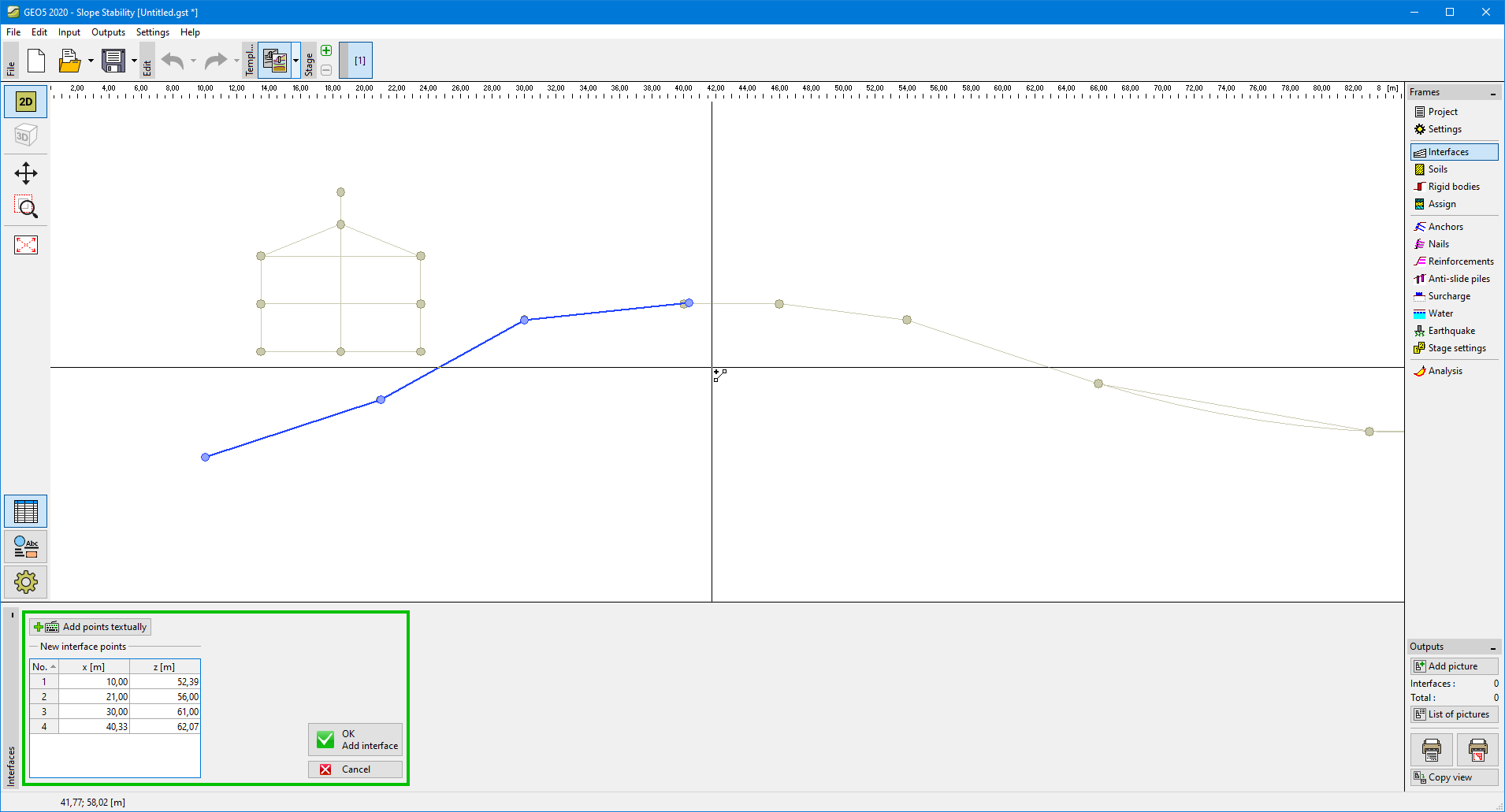 Introduzir dados usando um modelo é essencialmente o mesmo que a entrada padrão de dados no programa. A principal diferença aparece na possibilidade de adicionar um ponto de um modelo aos dados que estão sendo inseridos. Durante a entrada, o cursor do mouse aparece como uma cruz axial - quando se aproxima do modelo, ele se transforma em uma pequena cruz e os eixos longos desaparecem. Quando um ponto agora é inserido (usando o botão esquerdo do mouse), o ponto do modelo é inserido (o ponto de entrada tem agora as mesmas coordenadas que o ponto no modelo). Para acelerar a entrada de linhas individuais, parece útil empregar as ferramentas de zoom. Depois que as interfaces são colocadas, o procedimento pode ser aplicado para a entrada de outras entidades. Durante a entrada, é possível modificar o modelo a qualquer momento.