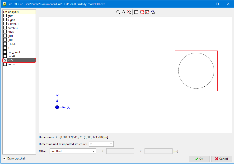 Ao inserir dados, o modelo pode ser modificado a qualquer momento pressionando o botão "Modificar" na barra de ferramentas "Template DXF". Isso abre uma janela de diálogo com camadas individuais do modelo. Por exemplo, ao inserir ancoragens, é possível desligar todas as camadas, exceto ancoragens - inserindo ancoragens, torna-se simples e lúcida.