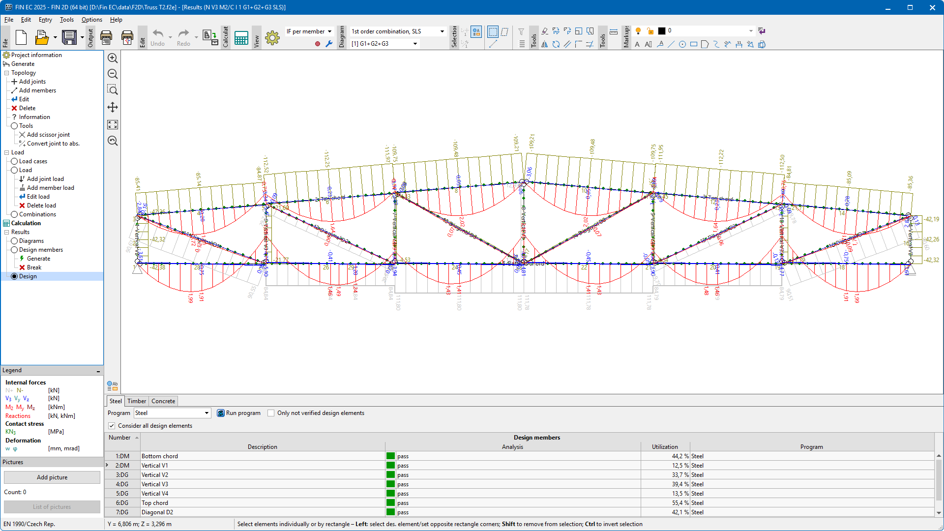 FIN 2D has been developed to performs structural analysis of 2D structures using the Finite Element Method (FEM). The program allows simple entering of structures and contains user-friendly interface to view results of structural analysis. Very close connection with design programs of FIN EC package gives you the advantage of verification the structure in these specialized programs and sending the results back to FIN 2D.