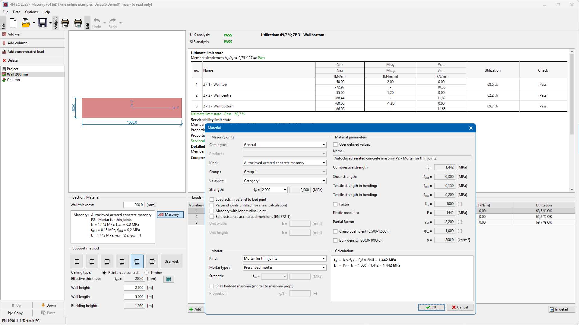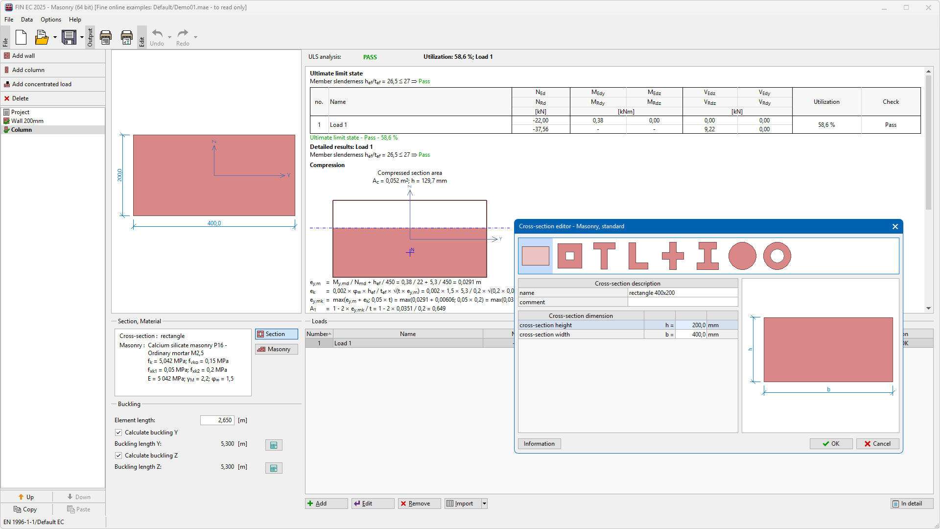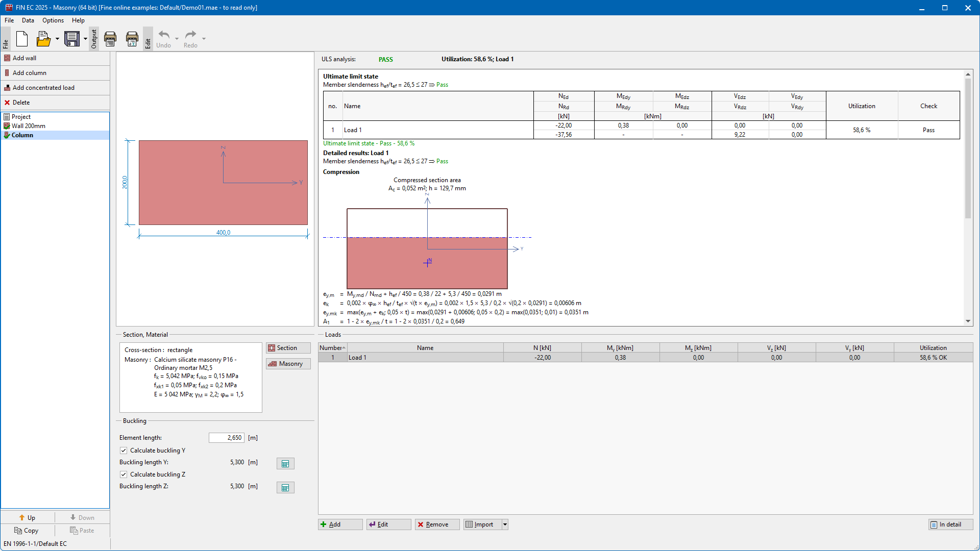 Program for verification of masonry structures according to EN 1996-1-1. The program is able to verify both masonry walls and columns.