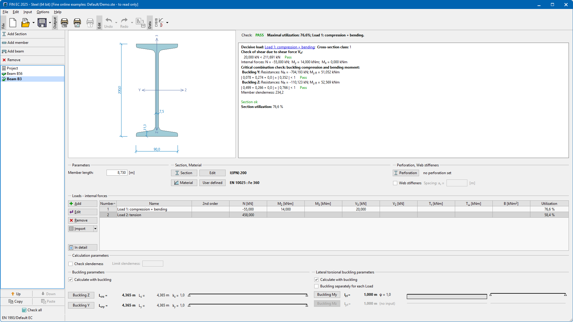 The program for design of steel cross-sections and members according to EN 1993-1-1 and EN 1993-1-4 (Eurocode 3). The program can work as a standalone application or verification module in programs FIN 2D and FIN 3D.