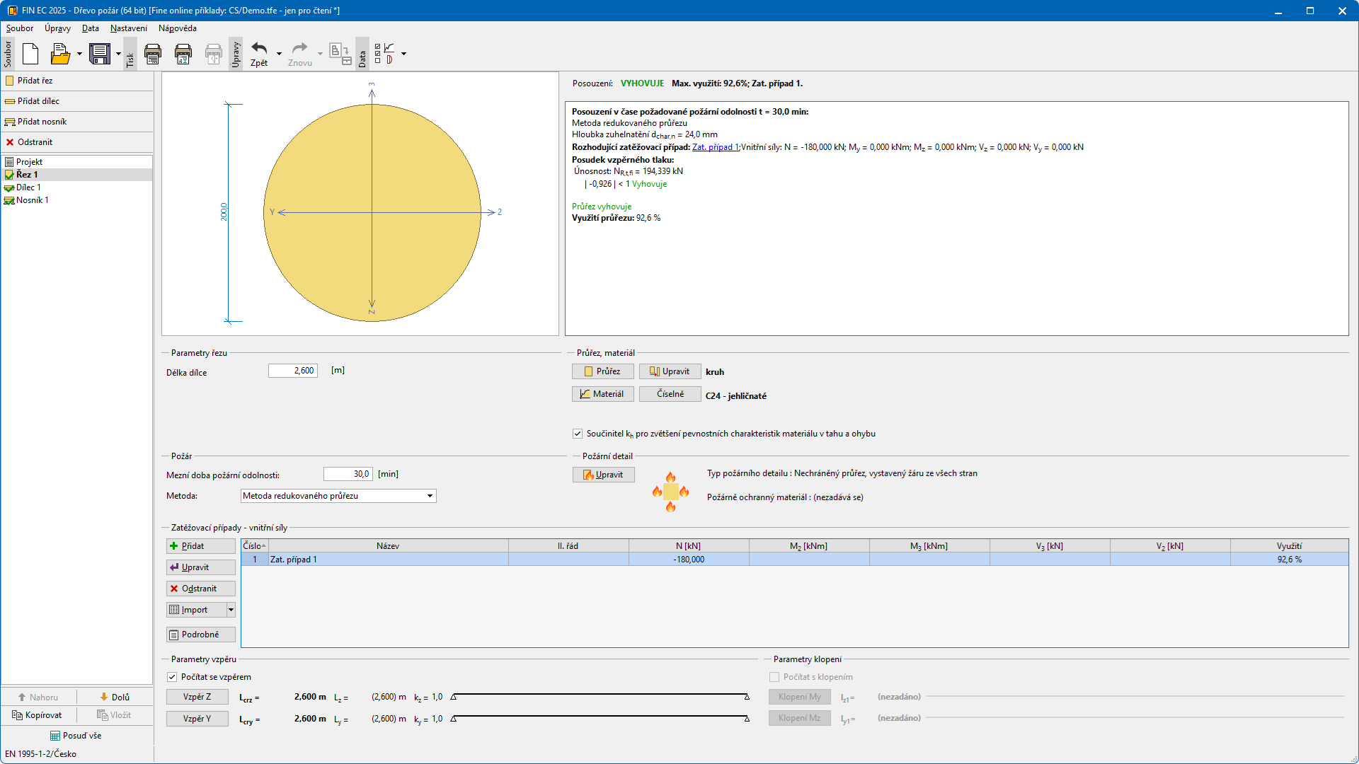 The program for fire resistance verification of timber cross-sections and members according to EN 1995-1-2 (Eurocode 5). The program can work as a standalone application or verification module in programs FIN 2D and FIN 3D.