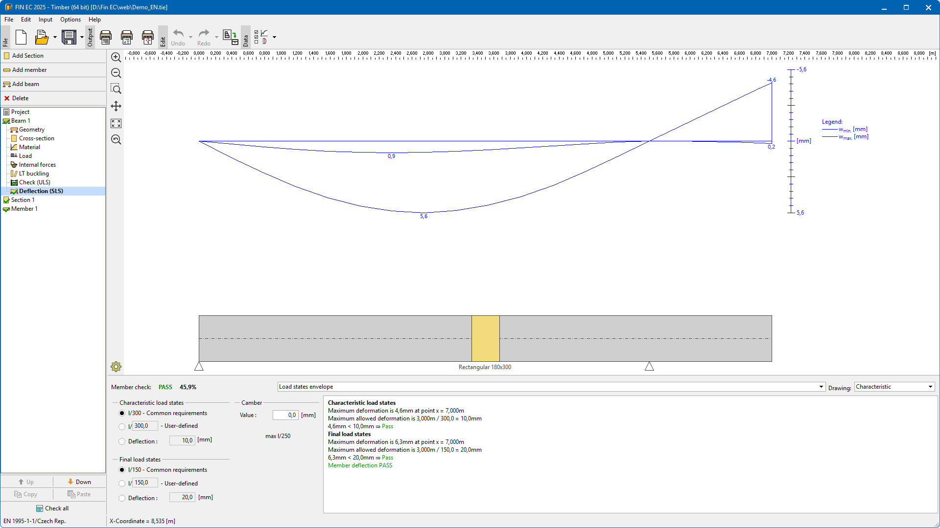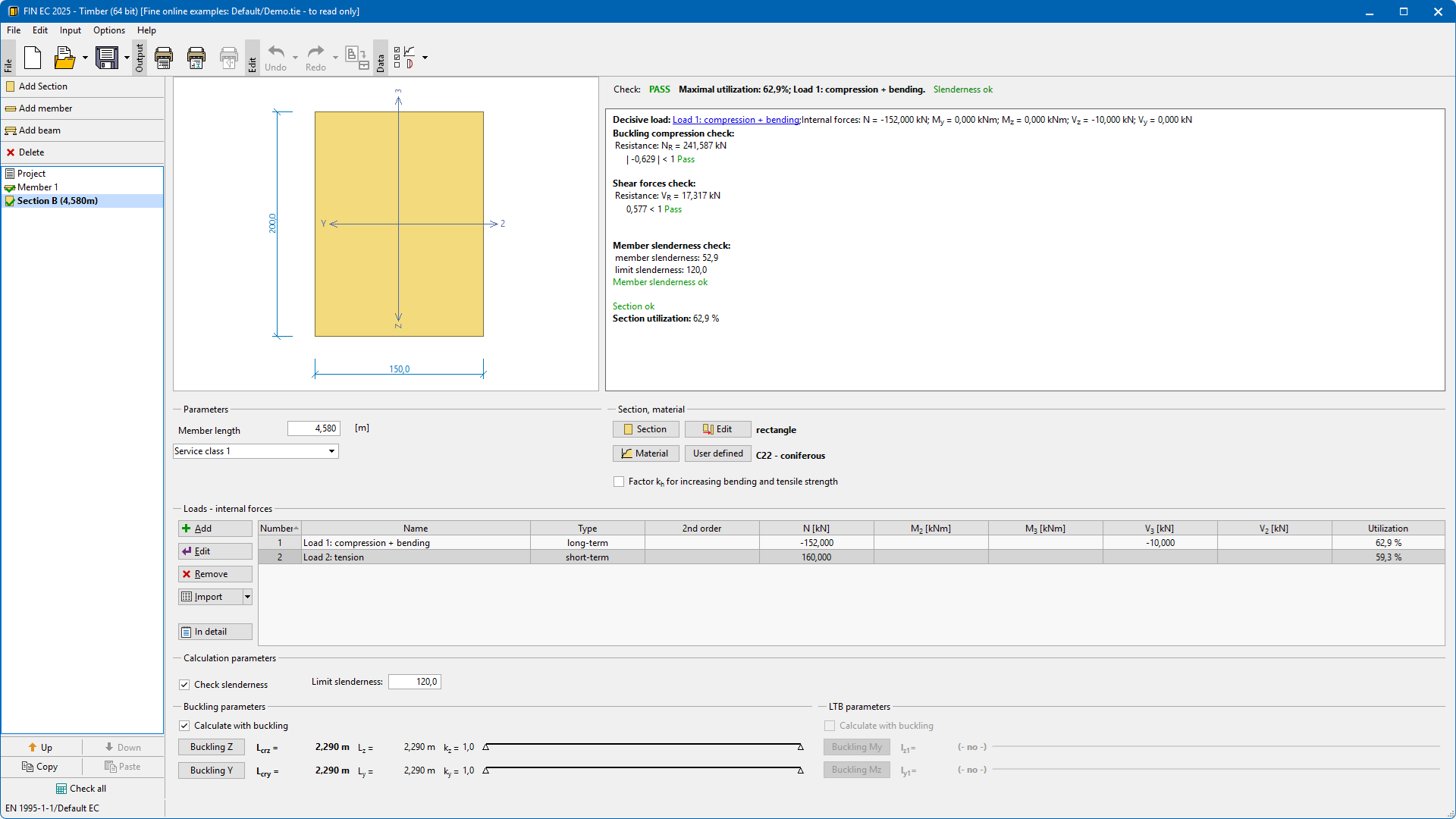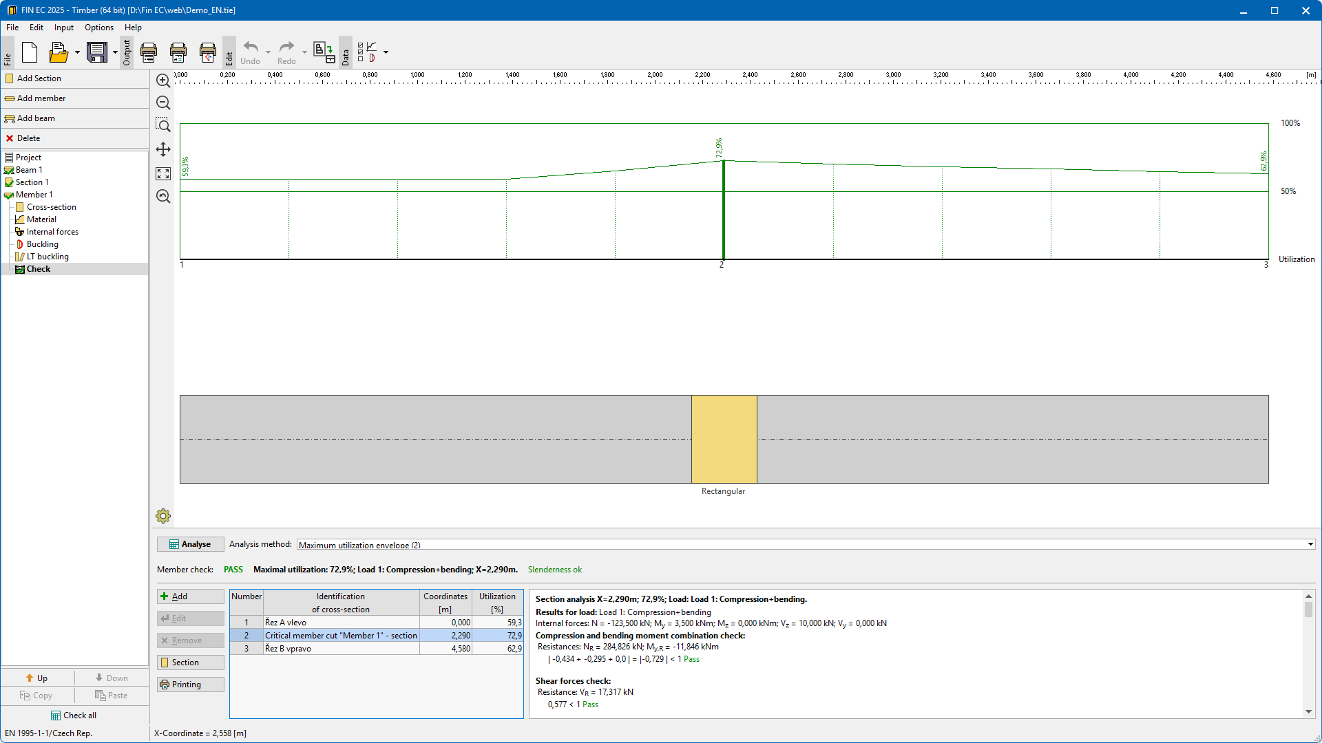 The program for design of timber cross-sections and members according to EN 1995-1-1 (Eurocode 5). The program can work as a standalone application or verification module in programs FIN 2D and FIN 3D.